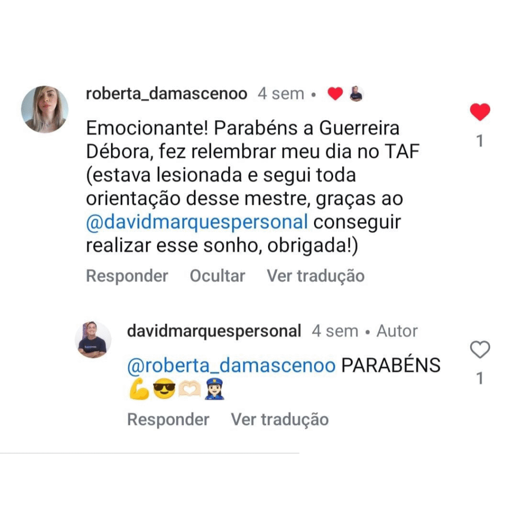 Com a consultoria do Mestre do TAF, você vai seguir um caminho validado, com suporte direto, treino prático e resultados reais. Mesmo começando do zero, você pode – e vai – chegar no dia do teste preparado, calmo e com a confiança de quem sabe que vai passar.